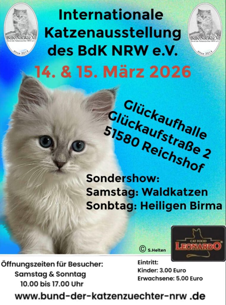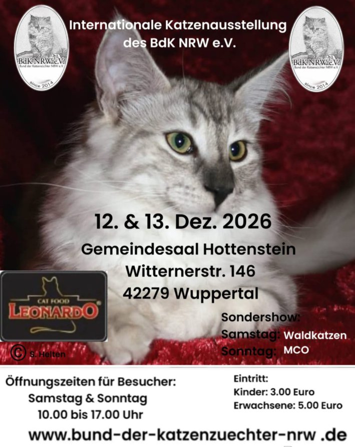 Gemeldete Katzen können bis 2 Wochen vor der Ausstellung kostenfrei umgemeldet werden.